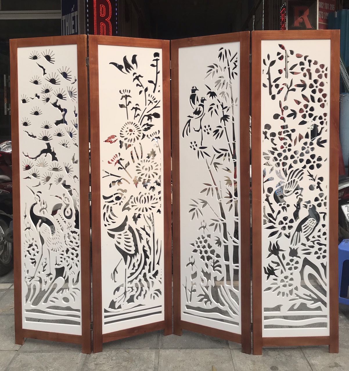 - Tên sản phẩm: Bình Phong Khung Gỗ Nền Nhựa Cắt CNC-Mã HA-6043